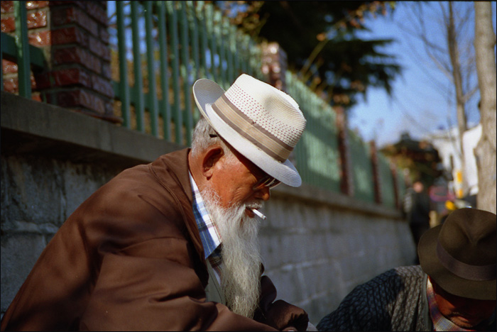 달성공원 담벽에서, 멋진 수염을 가진분.