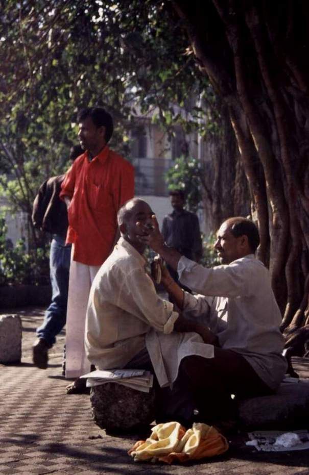 인도 뭄바이 거리의 면도사