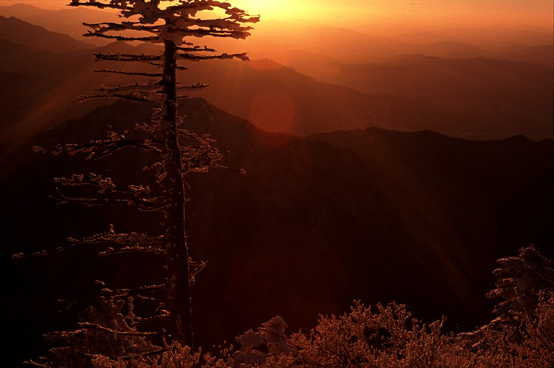 전경으로 걸처놓은 주목에 달린 빙화에 눈이 한참 멈춤니다. 아름다운 아침입니다. ^^;