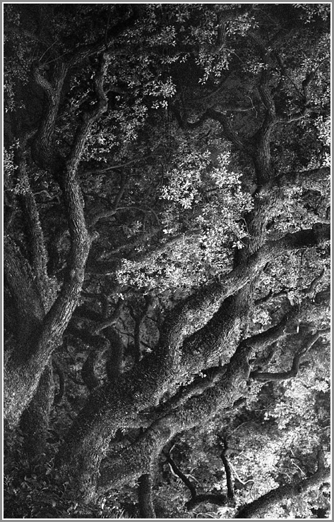 무수한 가지와 엉긴 덥수룩한 넝쿨식물들이