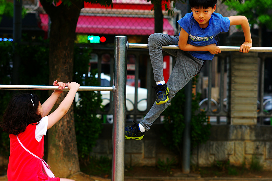 - 설명여학생 매달리기도 전에 벌써 철봉위로 올라가 포즈를 잡아줍니다