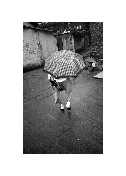 등이 굽으신 채 우산을 받고 가시는 할머니의 뒷모습이