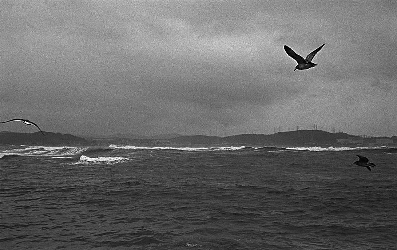 비오는 일기... 갈매기도 낮게 날아... 사람 머리위를 바로스치고 지나는
