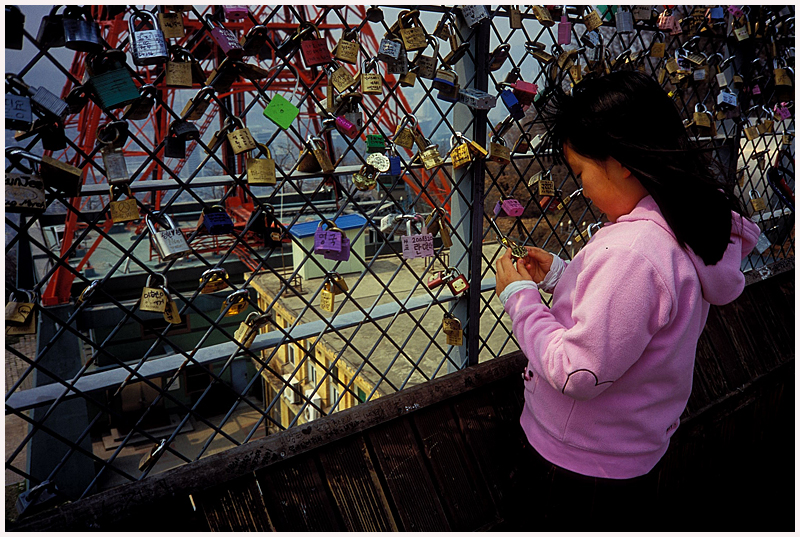 저 많은 자물통에 쓰여진 글귀를 보면