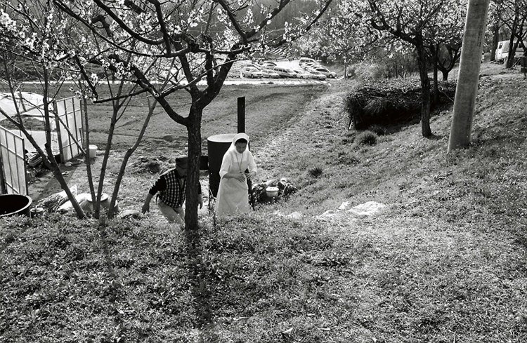 수녀님의 흰 옷과 주변이 잘 어울립니다