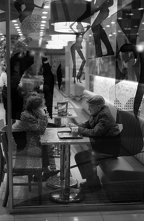 노부부와 유리에 새겨진 그림이 대조적 입니다.^^
