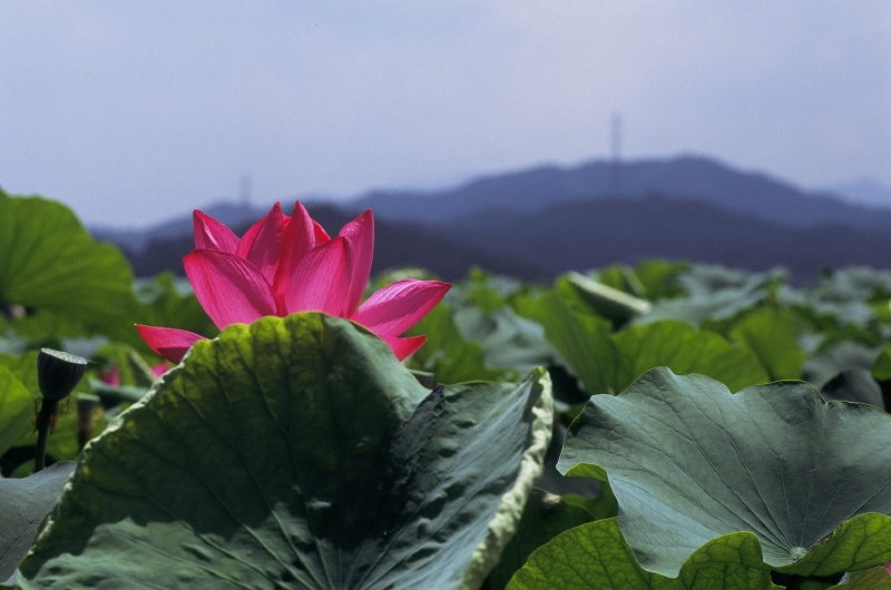 녹색의 연잎뒤로 살짝 숨은 연꽃도 참 이쁘네요..^^