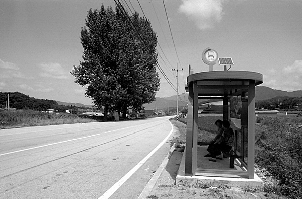따가웁고 한적한듯 정감어린 풍경 태양전지는 열심히충전하고 버스를기다리는아낙들 모던것이 좋읍니다..좋은 사진 구경 잘했읍니다.