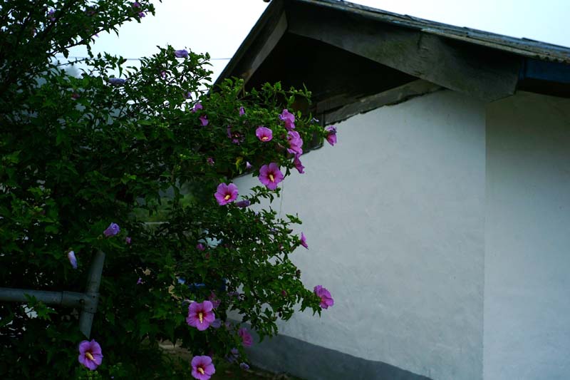 무궁화와 소박한 세멘트 담장이 잘 맞습니다.