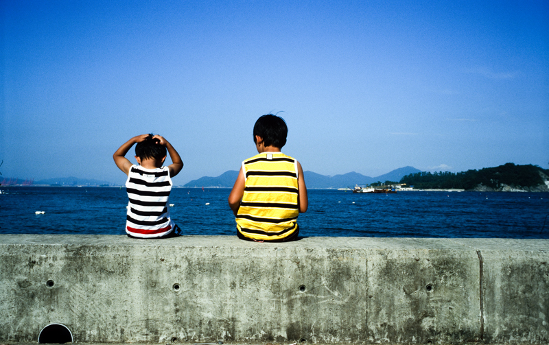 - 설명방파제 벽에 앉아 투닥이던 형제