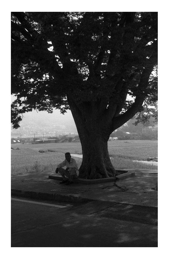 혼자 큰 나무아래 쉬고 계시는 할아버지...