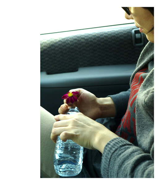 차 창 밖으로 코스모스를 한송이 꺽다.