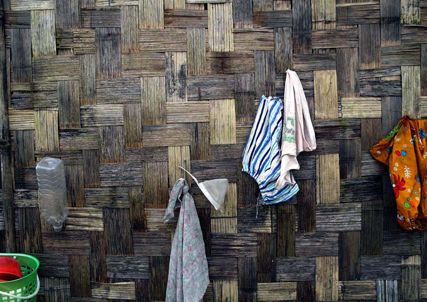 - 설명2009. 9.26 전통 가옥 대나집의 벽면, 생필품을 걸어 두고 빨래를 말린다.