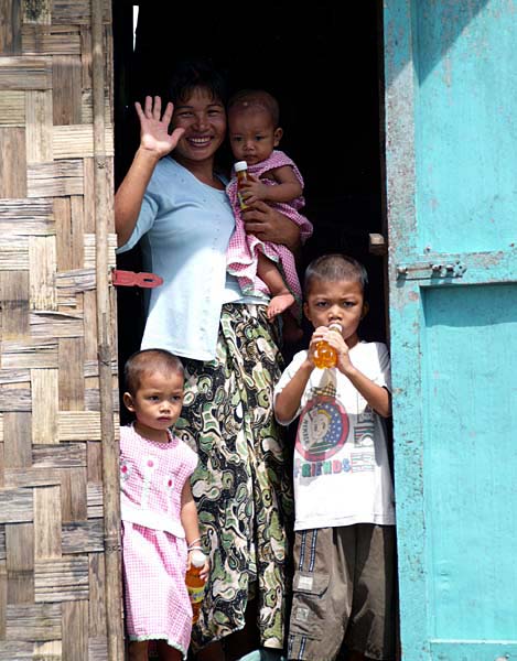 - 설명2009.9.26 대나무를 엮은 전통가옥에서 사는 단란한 가족, 아빠는 '미얀마 1'의 사진이다.