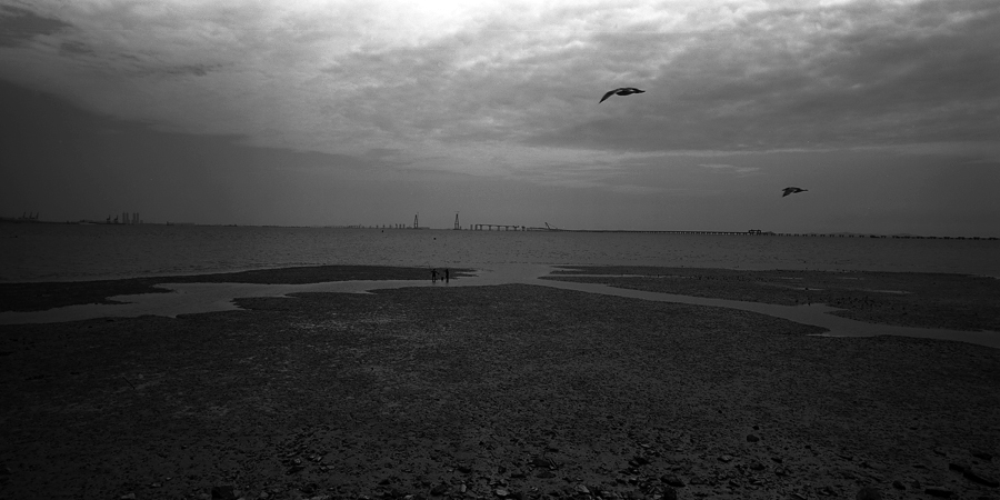 비상하는 갈매기와 아래에 펼처지는 개펄의 삼각구도가 절묘합니다.