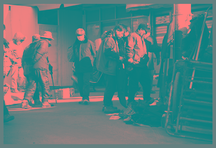 노점에 옷가지를 흥정하고 - - -