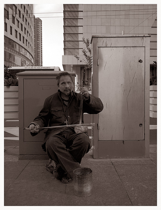애니 로리를 연주하고 있는 ( - 한쪽 눈이 맹인 같아 보입니다만 - )