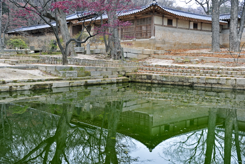 - 설명애련지 옆 작은 못에 비친 연경당.
