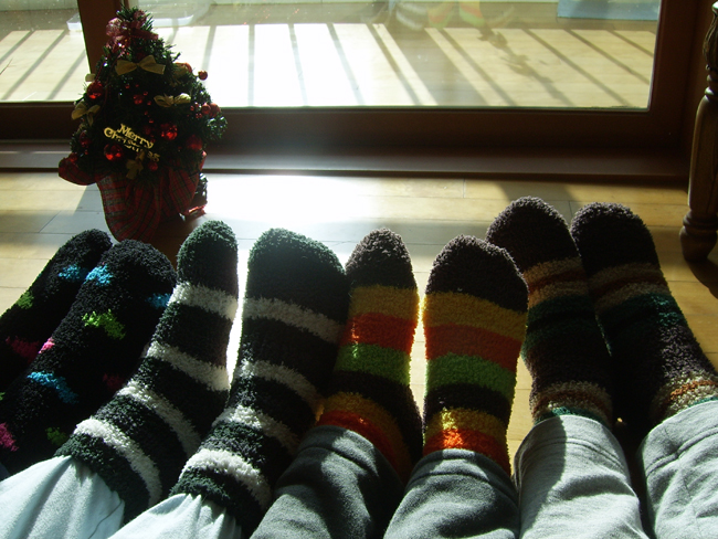 양말을 벗어 걸어 놔야 산타할아비가 선물을 넣을 턴디.... ㅋㅋ