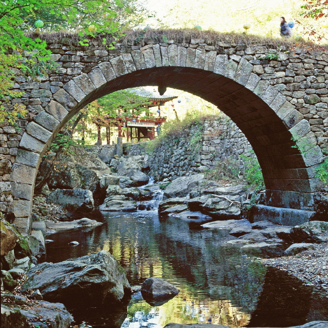 한국의 미~ 돌다리와 그 사이로 보여지는 사찰이 어우러져 더욱 아름답습니다..