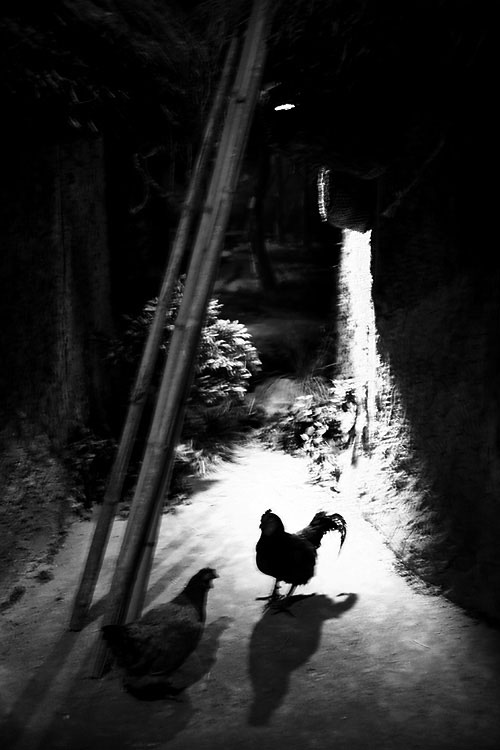 수탉의 암탉을 향해 드리워진