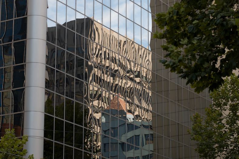 창에 비친 건물의 반영이 너무도 아름답습니다.