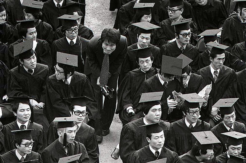 옛날에는 추운 날씨에도 대운동장에 모두 집합한 가운데 학사, 석사, 박사 학위수여식을 가졌다.