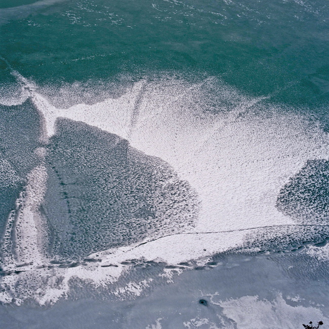 얼어붙은 얼음아래로 보이는 강물의 색채가 너무 아름답습니다.