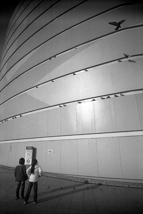 우측 상단의 새... 여백, 패턴... 모노톤 속의 구성...