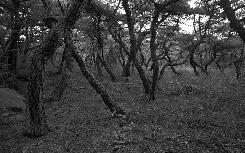 점잖은 소나무를 봐도 춤을 추고 있는 것처럼 보인다.