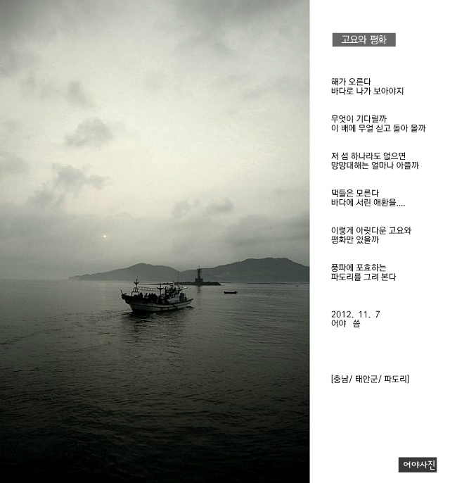 고요와 평화 허영주 Exhibition 관련링크 본문 페이지 정보 작성일 : 12-11-07 09:51 1,068 2 32 추천하기이 사진을 추천합니다 허영주님 사진 모두보기 + 설명. [충남/ 태안군/ 소원면/ 파도리/ 통계항] . 다음 사진 이전 사진 목록 추천 32 댓글목록 류미라님의 댓글 류미라 12-11-07 11:30 저쪽 섬을 오고가는 배일까요? 저쪽 섬을 오고가는 배일까요? 허영주님의 댓글 허영주 12-11-07 16:59 인용: 원 작성회원 : 류미라 저쪽 섬을 오고가는 배일까요? 저 배에는 강태공들이 실린 것 같던데요~~~^^ <!-- BEGIN TEMPLATE: bbcode_quote_new --> <div style="margin:5px 15px 10px; "> <div style="font-size:0.9em;margin-bottom:2px;">인용:</div> <table cellpadding="" cellspacing="0" border="0" width="100%"> <tr> <td class="alt2" style="border:1px inset #ddd;text-align:left;padding:10px 20px;"> <div style="font-size:0.9em;margin-bottom:5px;"> 원 작성회원 : <strong>류미라</strong> </div> <div style="font-style:italic">저쪽 섬을 오고가는 배일까요?</div> </td> </tr> </table> </div> <!-- END TEMPLATE: bbcode_quote_new --><br /> <br /> <br /> 저 배에는 강태공들이 실린 것 같던데요~~~^^<img src="/img/smilies/smile.gif" border="0" alt="" title="Smilie" class="inlineimg" /> 추천 회원목록 박인종 염상협 김민정(히카루) 조현갑 서재근 서원호 정태환 송안호 이상훈 류미라 annie/정은주 도웅회 엄창호 오 명호 김 종원 김 상원 박찬민 한 성민 정승진 김수현... 이혜근 이영욱 장성욱 추천하기 닫기 쪽지보내기 전송 닫기 개인정보처리방침 “라이카클럽“(이하 “회사”)는 개인정보보호법에 따라 이용자의 개인정보 보호 및 권익을 보호하고 개인정보와 관련한 이용자의 고충을 원활하게 처리할 수 있도록 다음과 같은 처리방침을 두고 있습니다. 고객님의 정보는 개인의 소중한 자산인 동시에 회사 운영의 중요한 자료가 됩니다. 그러므로 회사는 운영상의 모든 과정에서 고객님의 개인정보를 보호하는데 최선의 노력을 다할 것을 약속 드립니다. 회사는 개인정보처리방침을 개정하는 경우 웹사이트를 통하여 공지할 것입니다. 제 1장. 개인정보 수집 동의절차 회사는 귀하께서 웹사이트의 개인정보보호방침 또는 이용약관의 내용에 대해 (동의한다)버튼 또는 (동의하지 않는다)버튼을 클릭할 수 있는 절차를 마련하여 (동의한다)버튼을 클릭하면 개인정보 수집에 대해 동의한 것으로 봅니다. 제 2장. 개인정보의 수집 및 이용 목적 회사는 개인정보를 다음의 목적을 위해 활용합니다. 처리한 개인정보는 다음의 목적 이외의 용도로는 사용되지 않으며 이용 목적이 변경될 시 사전동의를 구할 예정입니다. 가. 성명, 아이디, 비밀번호 : 회원 가입의사 확인, 서비스 부정이용 방지, 접속 빈도파악, 회원제 서비스 이용에 따른 본인 식별 절차 나. 이메일주소, 전화번호(수신여부 확인) : 고지사항 전달, 본인 의사 확인, 불만 처리 등 원활한 의사소통 경로의 확보, 이벤트 및 광고성 정보 제공 및 참여기회 제공, 접속 빈도파악 또는 회원의 서비스이용에 대한 통계 다. 주소, 전화번호 : 경품과 물품 배송에 대한 정확한 배송지의 확보 제 3장. 광고정보의 전송 가. 회사는 귀하의 명시적인 수신거부의사에 반하여 영리목적의 광고성 정보를 전송하지 않습니다. 나. 회사는 약관변경, 기타 서비스 이용에 관한 변경사항, 새로운 서비스/신상품이나 이벤트 정보, 기타 상품정보 등을 전자우편, 휴대폰 문자전송 기타 전지적 전송매체 등의 방법으로 알려드립니다. 이 경우 관련 법령상 명시사항 및 명시방법을 준수합니다. 다. 회사는 상품정보 안내 등 온라인 마케팅을 위해 광고성 정보를 전자우편 등으로 전송하는 경우 전자 우편의 제목란 및 본문란에 귀하가 쉽게 알아 볼 수 있도록 조치합니다. 제 4장. 개인정보의 수집범위 회사는 별도의 회원가입 절차 없이 대부분의 콘텐츠에 자유롭게 접근할 수 있습니다. 회원제 서비스를 이용하고자 할 경우 다음의 정보를 입력해주셔야 합니다. 가. 개인정보 수집항목 : 이름, 이메일, 생년월일, 아이디, 비밀번호, 성별, 주소, 휴대폰 번호(전화), 이메일 수신여부, SMS 수신여부, 서비스 이용기록, 접속로그, 받는 고객 정보(이름, 전화번호, 주소, 이메일) 나. 개인정보 수집방법 : 홈페이지 내 회원가입 및 게시판 등 제 5장. 개인정보의 보유 및 이용기간 회사는 개인정보 수집 및 이용목적이 달성된 후에는 해당 정보를 지체 없이 파기합니다. 단, 다음의 정보에 대해서는 아래의 이유로 명시한 기간 동안 보존합니다. -보존항목 : 이름, 로그인 ID, 비밀번호, 이메일, 생년월일 -보존근거 : 불량 회원의 부정한 이용의 재발 방지 -보존기간 : 1개월 그리고 관계법령의 규정에 의하여 보존할 필요가 있는 경우 회사는 아래와 같이 관계법령에서 정한 일정한 기간 동안 회원정보를 보관합니다. 소비자의 불만 또는 분쟁처리에 관한 기록 : 3년 (전자상거래 등에서의 소비자보호에 관한 법률) 제 6장. 개인정보의 파기 절차 및 방법 회사는 원칙적으로 개인정보 처리목적이 달성된 경우에는 지체 없이 해당 개인정보를 파기합니다. 파기의 절차, 기한 및 방법은 다음과 같습니다. -파기절차 회원님이 회원가입 등을 위해 입력하신 정보는 목적 달성 후 별도의 DB로 옮겨져(