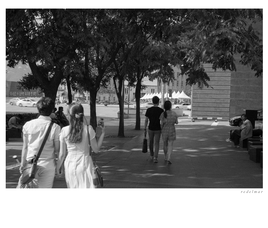 청춘과 노년의 대비말고도 각각의 시선들이 만들어 내는 입체감이 평면적인 사진에서 깊이를 만들어 줍니다.