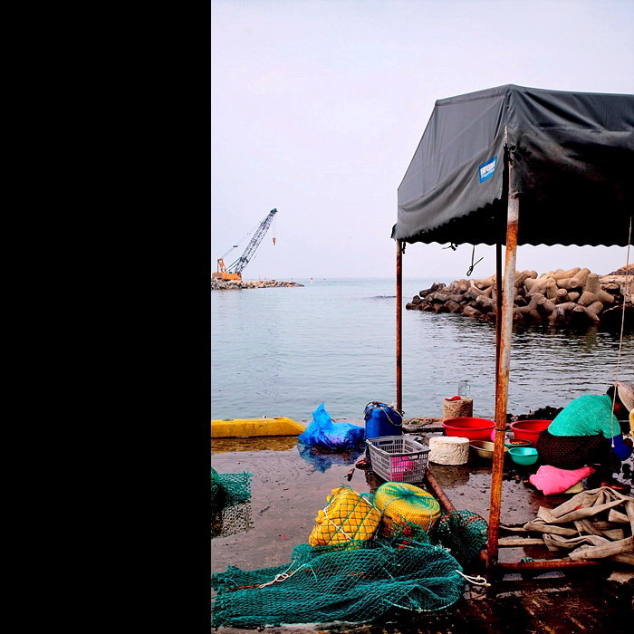 색도 좋지만 어머니의 엎드린 자세와 멀리 보이는 중장비가 대비되어 기계처럼 일해오신 삶이 포개져 보입니다.