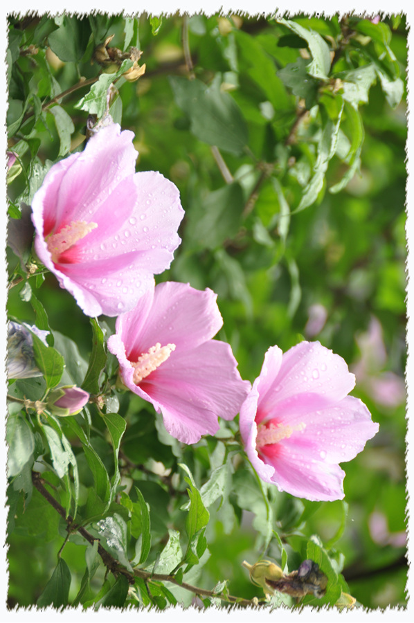 물끼를 머금은 깨끗한 무궁화를 보니 광복절을 앞두고 더 좋습니다.