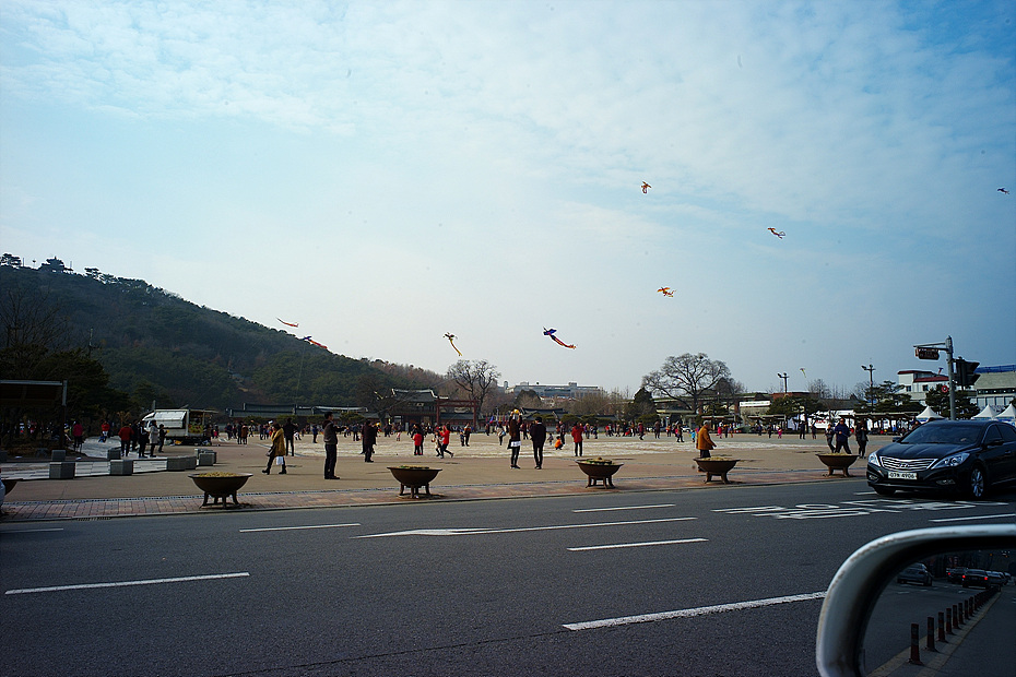 - 설명신호 대기중 차안에서 수원 행궁 광장에서 연날리는 모습을,