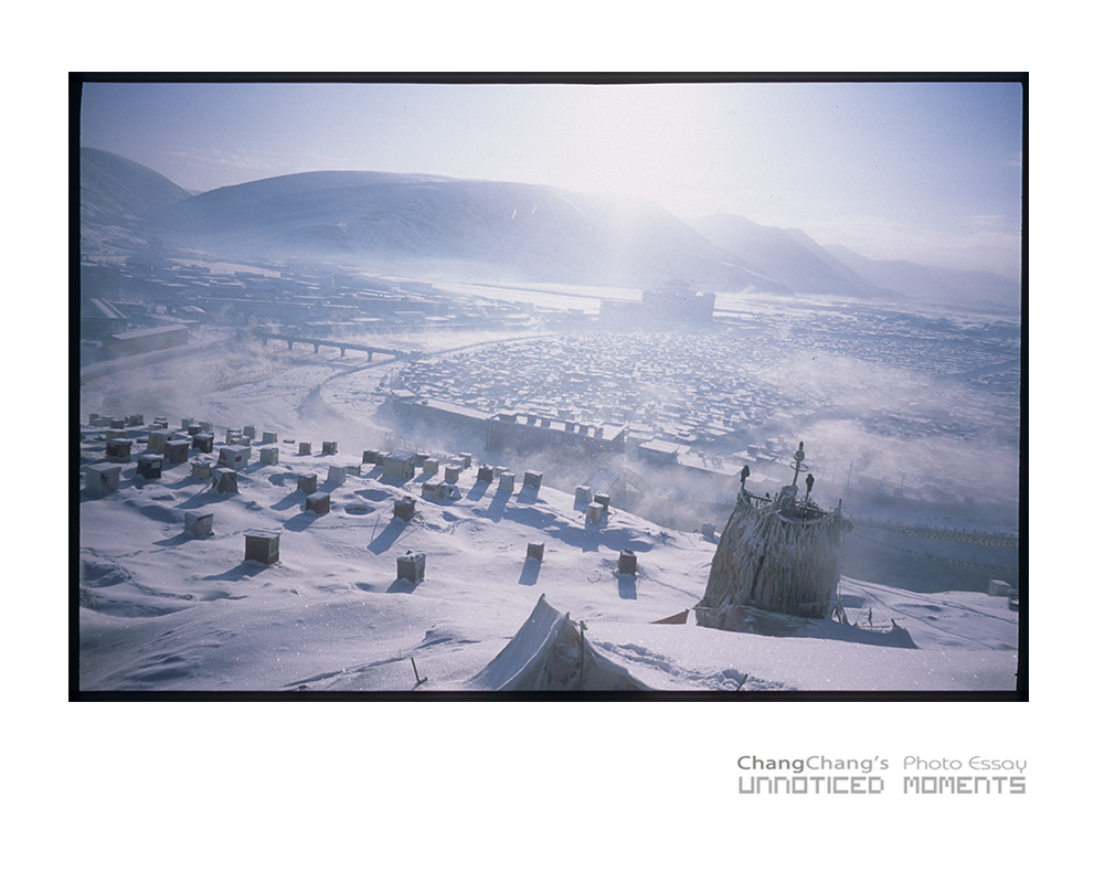 차가운 공기를 헤치며 야롱강을 어슬렁 거리는 시냇물은 안개를 피어올리어 신비감을 더해준다.
