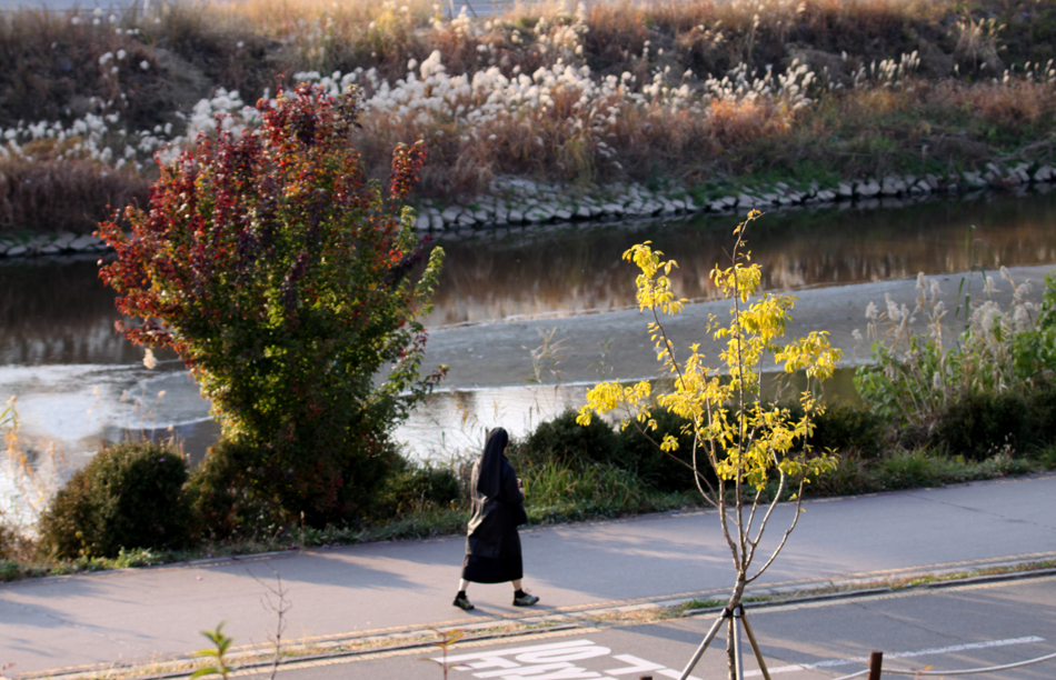- 설명수녀님이 바쁘게 걸어가는 모습애서 깊어가는 가을 을 느낍니다