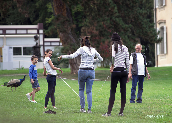 우리네 '고무줄' 놀이와 비스무리 해 보입니다만.. 즐겁게 뛰어 노는 모습을 흐믓하게 바라보는 모습 모두.. 여유롭게 보여 좋습니다!! |