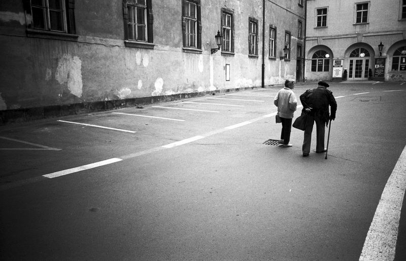그 사이를 느릿하게 걸어가는 두 노인...