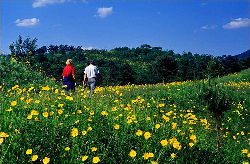 이런 좋은 곳을 직접 걸어보고 있는 등장인물 두 사람, 부럽습니다..