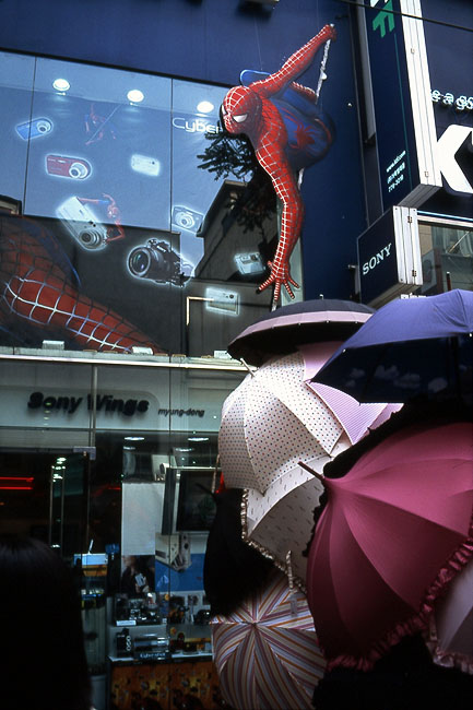 스파이더맨의 새로운 신공...우산으로 거미줄치기 ^^