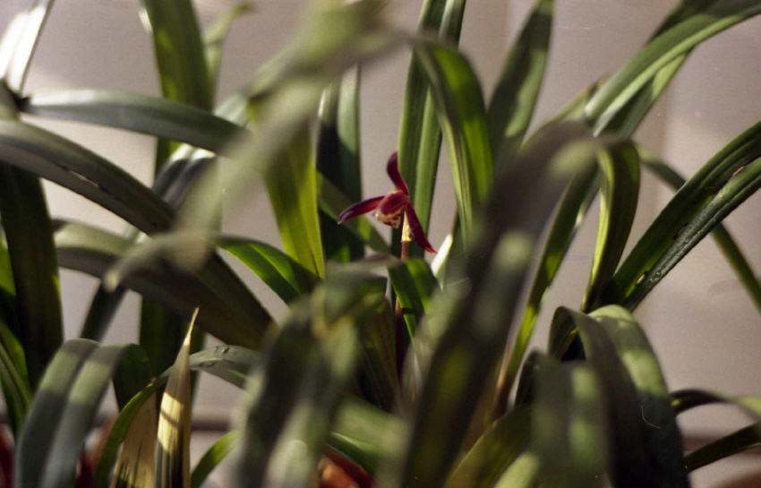 수줍은 듯 모습을 드러낸 붉은 난꽃을