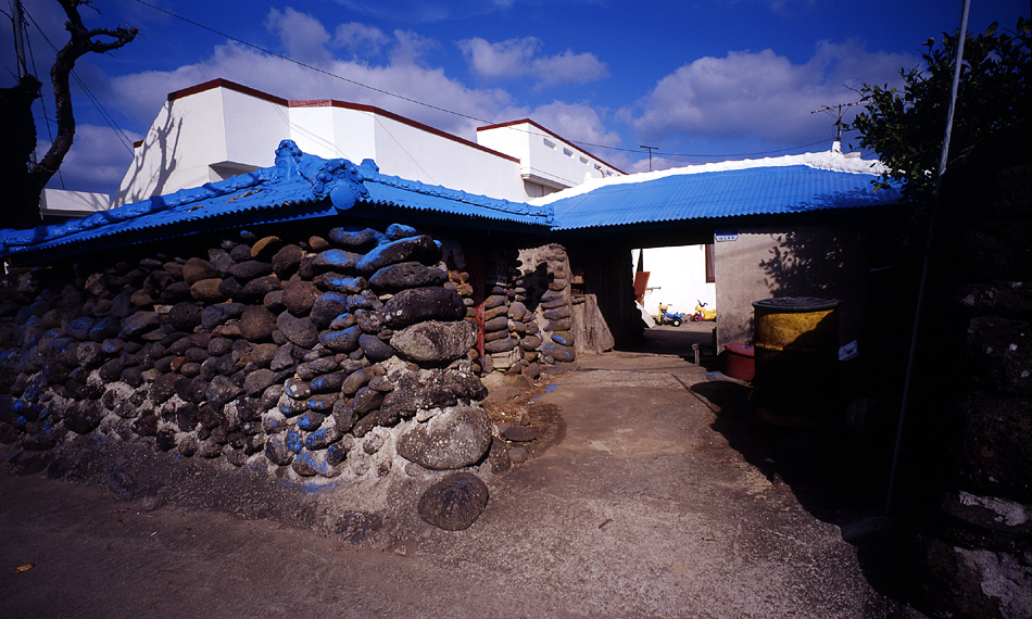 파란 하늘이 지붕 위에 쏟아져내려 돌담으로 넘쳐흘렀군요.^^