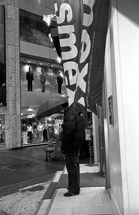 멀리 마네킨과 우산을 들고선 남자의 모습이 다른듯 비슷하게 느껴집니다.
