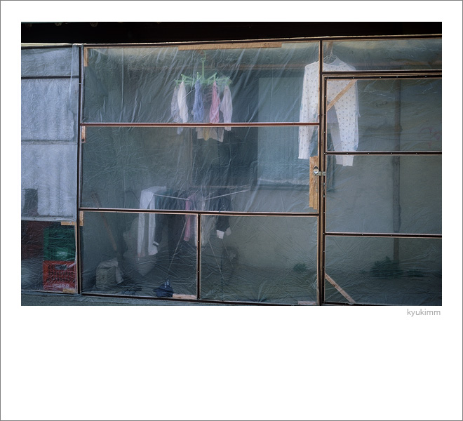 비닐의 질감과 임시 구조물, 그리고 빨래물의 청결한 느낌.....반투명하게 들여다봄이 나름대로 묘한 감성을 일으킵니다. 뉘앙스가 독특한 사진입니다. 잘 봤습니다.