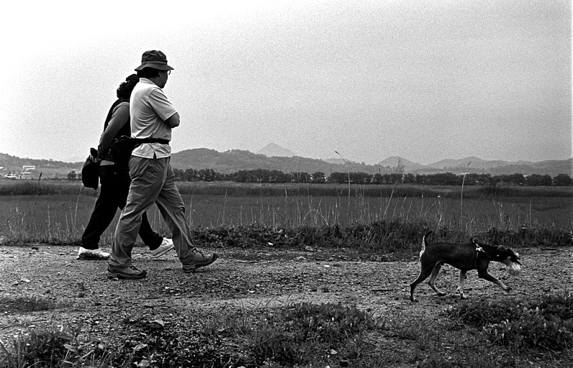 개를 앞세우고 산책...운치있는 사진입니다.^^