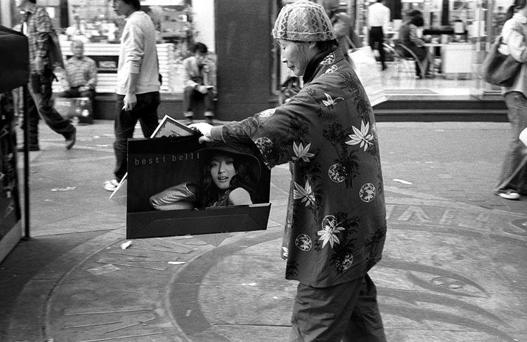 노인의 옷에 그려진 문양들은 마치 광고모델을 위한듯.. 마임의 한순간을 포착한듯한 멋진 순간입니다..