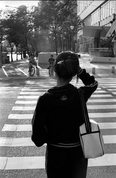 츄리닝과 가방 그리고 횡단보도의 라인과 아이들의 포즈까지
