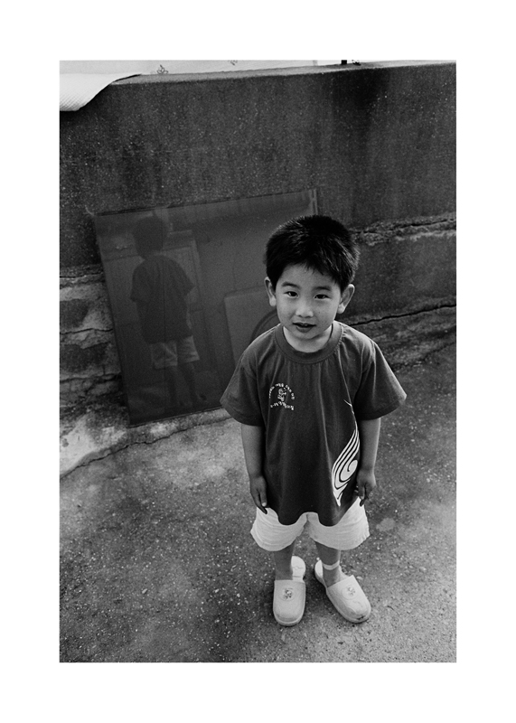 뒷 유리에 비친 어린이의 모습이 더욱 인상적입니다.