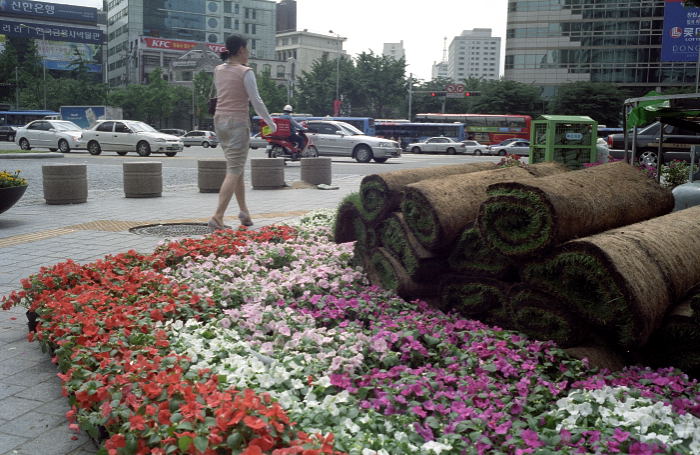 - 설명요새는 잔디를 카펫처럼 두루마리를 펼치는군요.